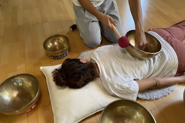 First, you will be informed about the process of the treatment. The sound massage begins with setting of intentions for the session. You will then be asked to lay down on a mat and Manolis will place Tibetan singing bowls onto and around your body. Throughout the session, you will experience a deep sound massage that will rejuvenate your body. At the end of the session, Manolis will gently guide you back to a feeling of awareness before concluding the therapy. Following a session, you will enjoy a cup of tea and you will be instructed on how to continue your day so that you experience the benefits of the sound therapy at the fullest. The session will last approximately 90 minutes, including sound work, moments of silence, guided exercises, and sharing. Please arrive 5 minutes early. Additional time beyond the scheduled session will incur extra charges.